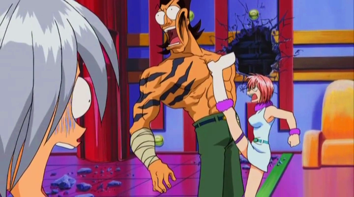 The Dancing Fangs go out of control and heads towards Rosa's direction. Rosa calls for help but Haru reminds her of the men's still-nonstop dancing, and the one to help her is Elie. After Elie tells Rosa that she saved her because she wouldn't like it if it was her face the one in danger, Rosa admits defeat. She heads towards Go in an attempt to wake him up. However, Go wakes up but ends up punching Rosa accidentally, leaving a mark on her face.[8]