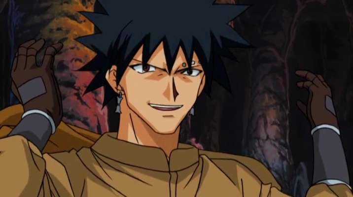 Elie, Plue, and Griffon Kato ride off in their cool vehicles towards the next Rave's location. Upon arriving at their destination, Griffon tells them about a hidden mine and leads them to it. At the mines, Haru and the gang spot Demon Card performing an excavation, also looking for the Rave; Plue walks away. Meanwhile, Shuda asks his men if they have located the Rave and walks off towards the mine, eagerly awaiting Haru Glory's arrival.