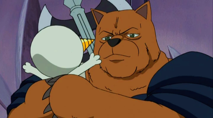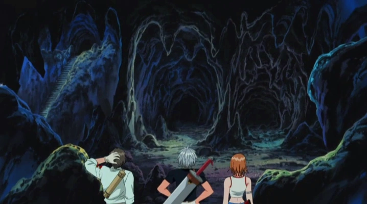 In the forest, Haru and Elie split off to search for Plue. Haru realizes that the henchmen already knew they are here. Suddenly, a large bear appears and frightens Haru who plays dead, but becomes shocked to learn the bear can talk as it asks Haru why has he come to this mountain. Meanwhile, Elie and Griffon encounter the henchmen and she takes control of the situation. With her Tonfa Blasters, she has the men face their backs towards her. Meanwhile, the bear tells Haru to turn back as the mine is a vast labyrinth. Haru states no regarding his promise to retun home, and the bear seems to acknowledge Haru as the Rave Master.